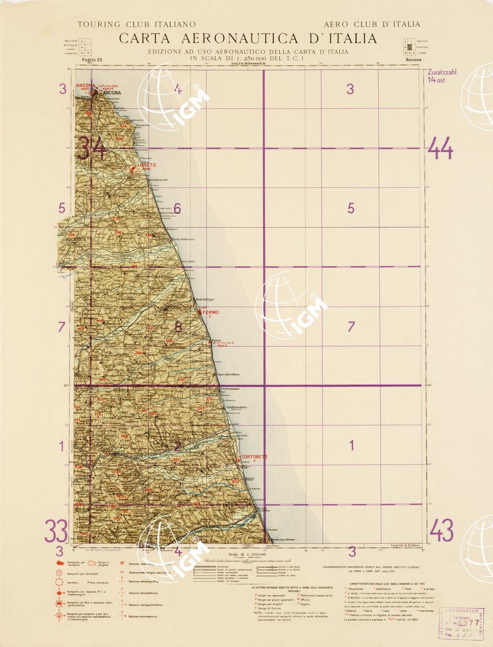 CARTA AERONAUTICA D’ITALIA (EDIZIONE TEDESCA) – Foglio 25 ANCONA