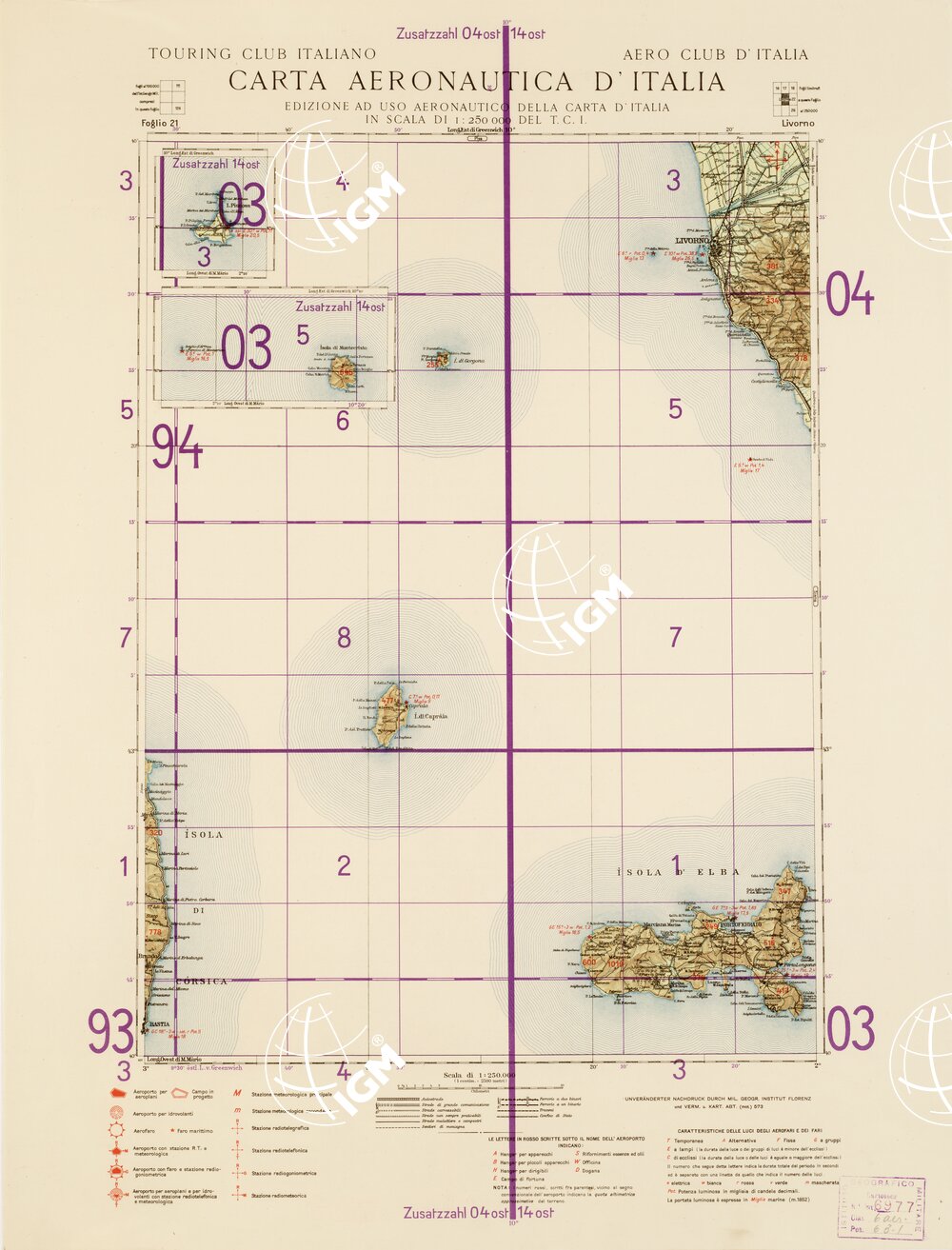CARTA AERONAUTICA D’ITALIA (EDIZIONE TEDESCA) – Foglio 21 LIVORNO