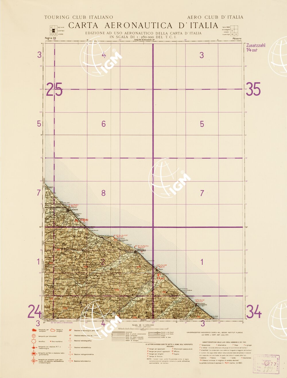 CARTA AERONAUTICA D’ITALIA (EDIZIONE TEDESCA) – Foglio 20 PESARO