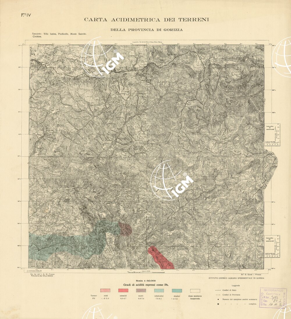CARTA ACIDIMETRICA DEI TERRITORI DELLA PROV. DI TRIESTE E DI GORIZIA – Foglio IV