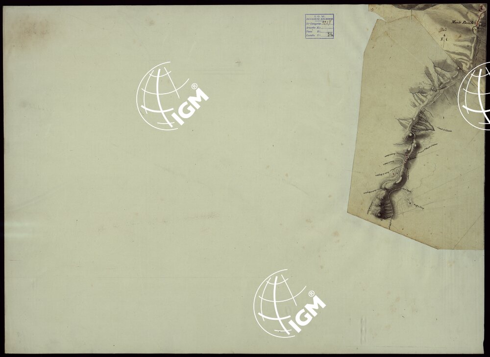 | Note foto | Ventun fogli, e un quadro d'unione, disegnati ad acquerello, a luce obliqua, composti a mosaico e montati su tela. Una nota a lapis sul foglio 5, fa supporre si tratti di rilievi originali di campagna eseguiti dal 1815 al 1816. |