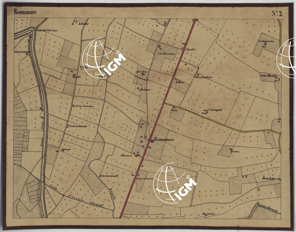 | Titolo proprio | CARTA DEI DINTORNI DI BORGOFORTE ALLA SCALA DI 1 AL 10.000 – Foglio 2 – Romanore |
