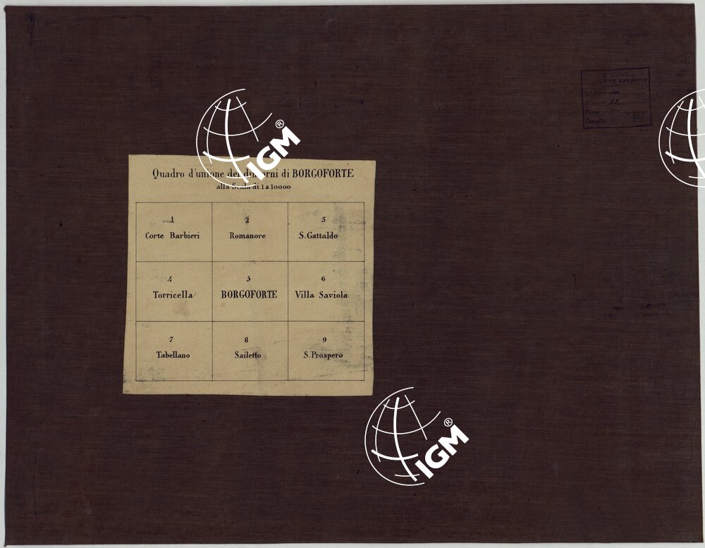 | Titolo proprio | CARTA DEI DINTORNI DI BORGOFORTE ALLA SCALA DI 1 AL 10.000 – Quadro d'Unione |