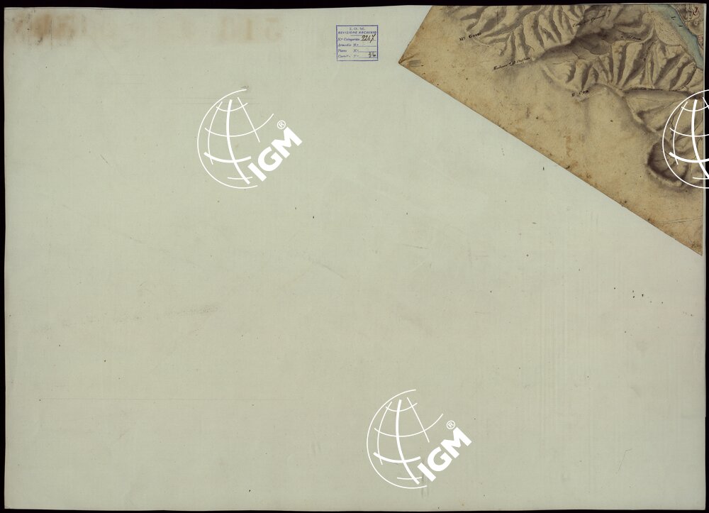 Ventun fogli, e un quadro d’unione, disegnati ad acquerello, a luce obliqua, composti a mosaico e montati su tela. Una nota a lapis sul foglio 5, fa supporre si tratti di rilievi originali di campagna eseguiti dal 1815 al 1816.