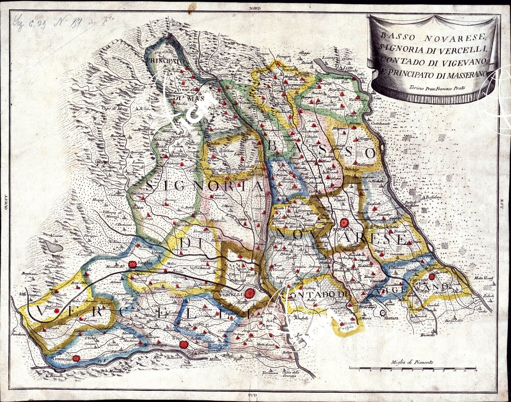 Carta finemente acquerellata,rappresentazione orografica a tratteggio.