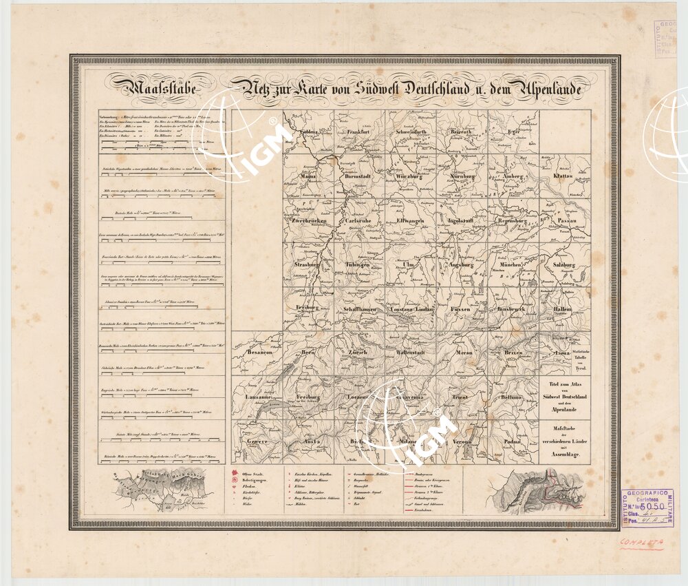ATLAS VON SUDWEST DEUTSCHLAND UND DEN ALPENLANDE – QUADRO D’UNIONE – SEGNI CONVENZIONALI