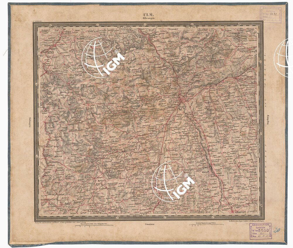 ATLAS VON SUDWEST DEUTSCHLAND UND DEN ALPENLAND – FOGLIO 20 – ULM – ELLWANGEN