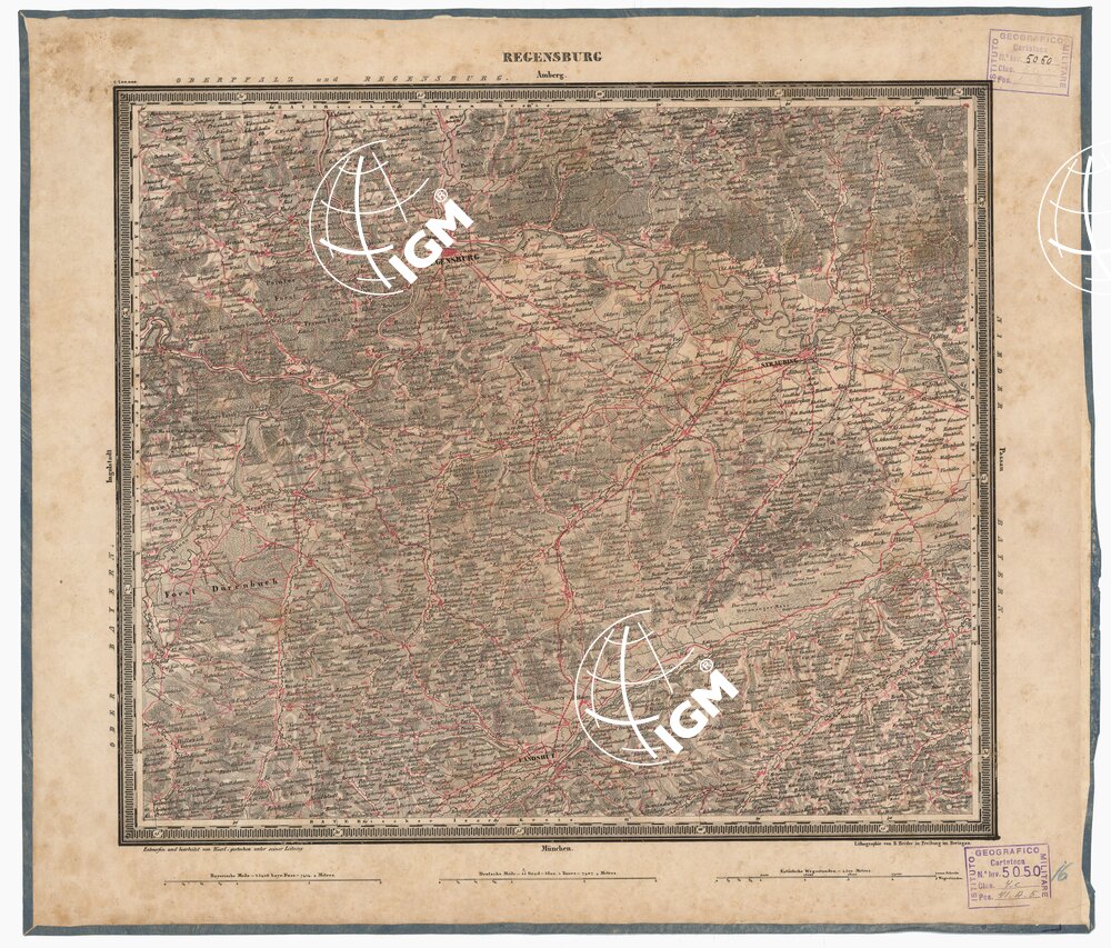 ATLAS VON SUDWEST DEUTSCHLAND UND DEN ALPENLAND – FOGLIO 16 – REGENSBURG – AMBERG