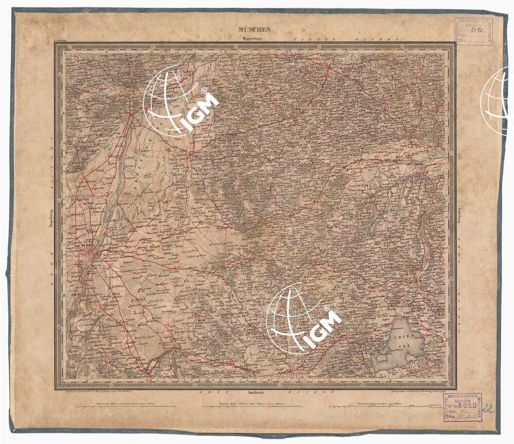 ATLAS VON SUDWEST DEUTSCHLAND UND DEN ALPENLAND – FOGLIO 22 – MUNCHEN – REGENSBURG