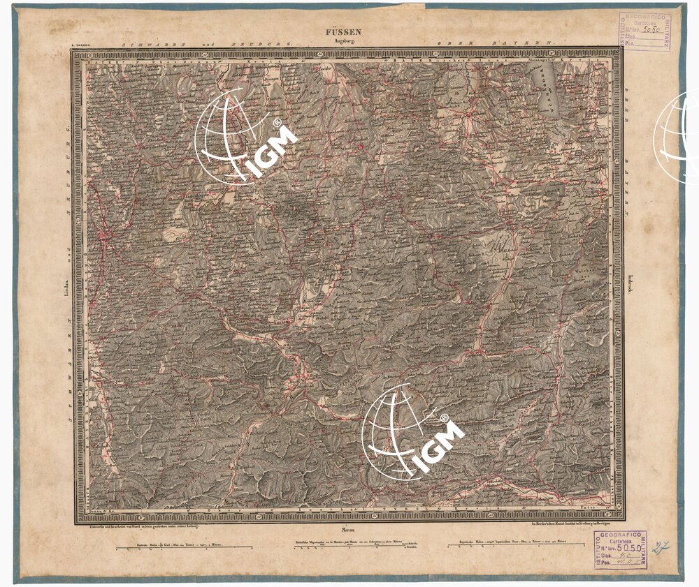 ATLAS VON SUDWEST DEUTSCHLAND UND DEN ALPENLAND – FOGLIO 27 – FUSSEN – AUGSBURG