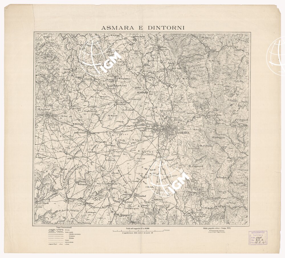L’origine delle coordinate (punto d’incontro della meridiana colla perpendicolare) fu fissato nel centro della tavoletta di Massaua ed sull’asse della cupola del palazzo dei Comandi di Massaua.