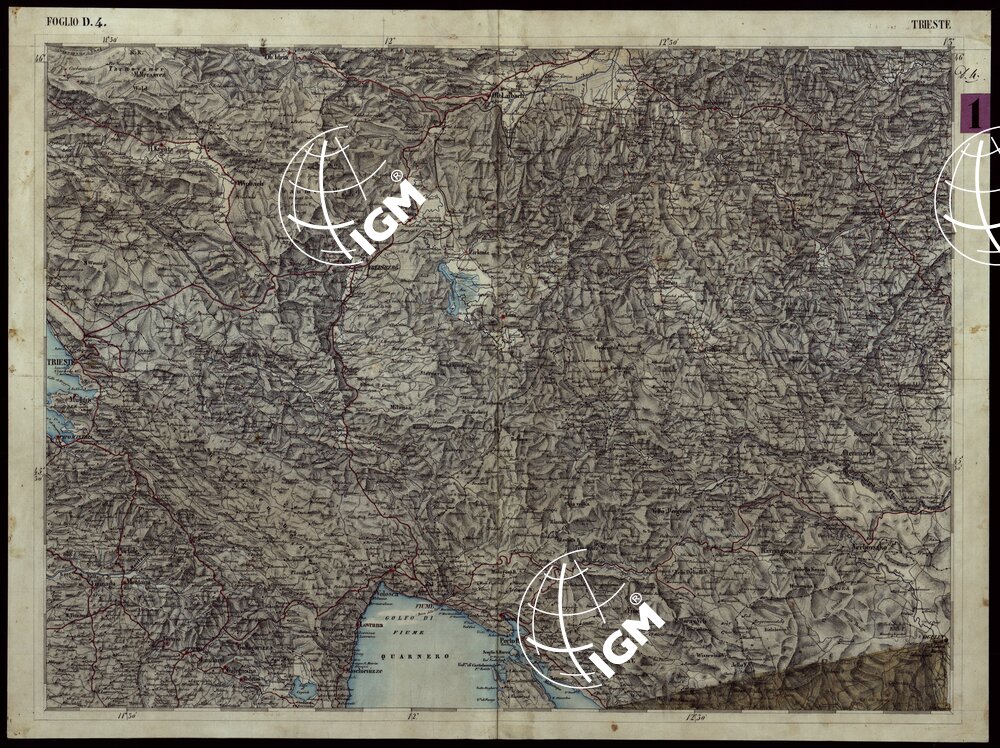 CARTA COROGRAFICA DEI VERSANTI SETTENTRIONALI E MERIDIONALI DELLE ALPI RETICHE CARNICHE E GIULIE IN 25 FOGLI – FOGLIO D.4 TRIESTE