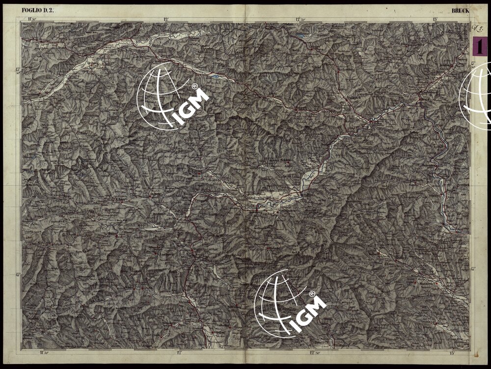 CARTA COROGRAFICA DEI VERSANTI SETTENTRIONALI E MERIDIONALI DELLE ALPI RETICHE CARNICHE E GIULIE IN 25 FOGLI – FOGLIO D.2 BRUCK