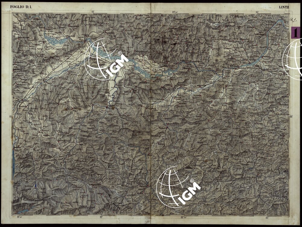 CARTA COROGRAFICA DEI VERSANTI SETTENTRIONALI E MERIDIONALI DELLE ALPI RETICHE CARNICHE E GIULIE IN 25 FOGLI – FOGLIO D.1 LINTZ