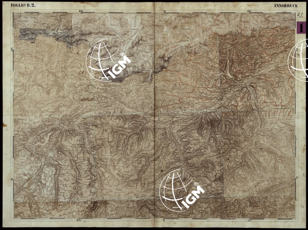 CARTA COROGRAFICA DEI VERSANTI SETTENTRIONALI E MERIDIONALI DELLE ALPI RETICHE CARNICHE E GIULIE IN 25 FOGLI – FOGLIO B.2 INNSBRUCK