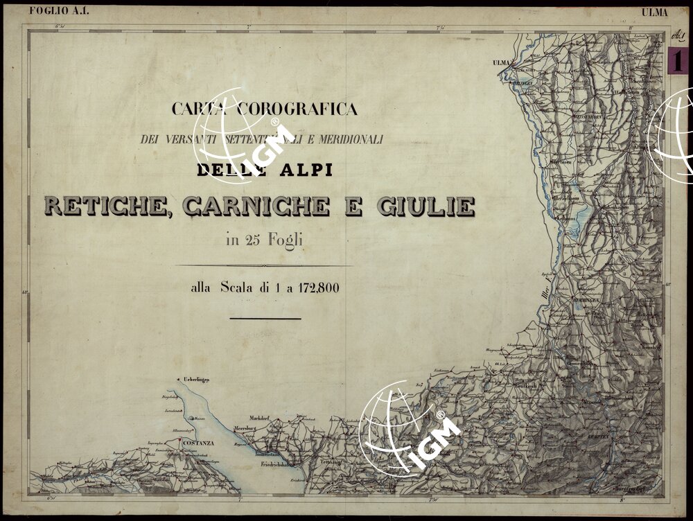 Fogli in parte disegnati e in parte costituiti da mosaici fotografici. Il materiale è servito da originale per la riproduzione eseguita nell’Ufficio Tecnico dello Stato Maggiore di Torino. L’orografia è rappresentata con tratteggio a luce obliqua. Per la carta stampata si veda il N° 132 di ordine (Doc. N° 20 Cartella N° 58 d’Archivio). La costruzione di questa carta venne iniziata dallo Stato Maggiore Sardo nel 1858.