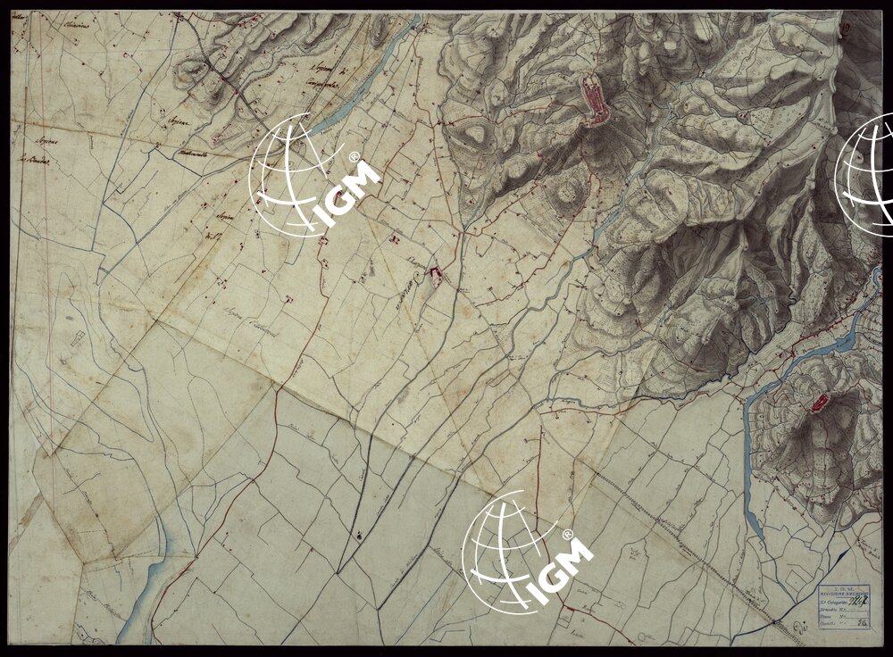 | Note foto | Ventun fogli, e un quadro d'unione, disegnati ad acquerello, a luce obliqua, composti a mosaico e montati su tela. Una nota a lapis sul foglio 5, fa supporre si tratti di rilievi originali di campagna eseguiti dal 1815 al 1816. |
