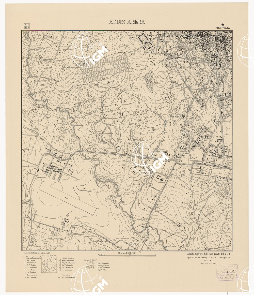 Rappresentazione orografica a curve di livello, l’equidistanza è di metri 5. Comando Superiore delle Forze Armate dell’A.O.I., Ufficio Topocartografico e Monografie (I.G.M.).