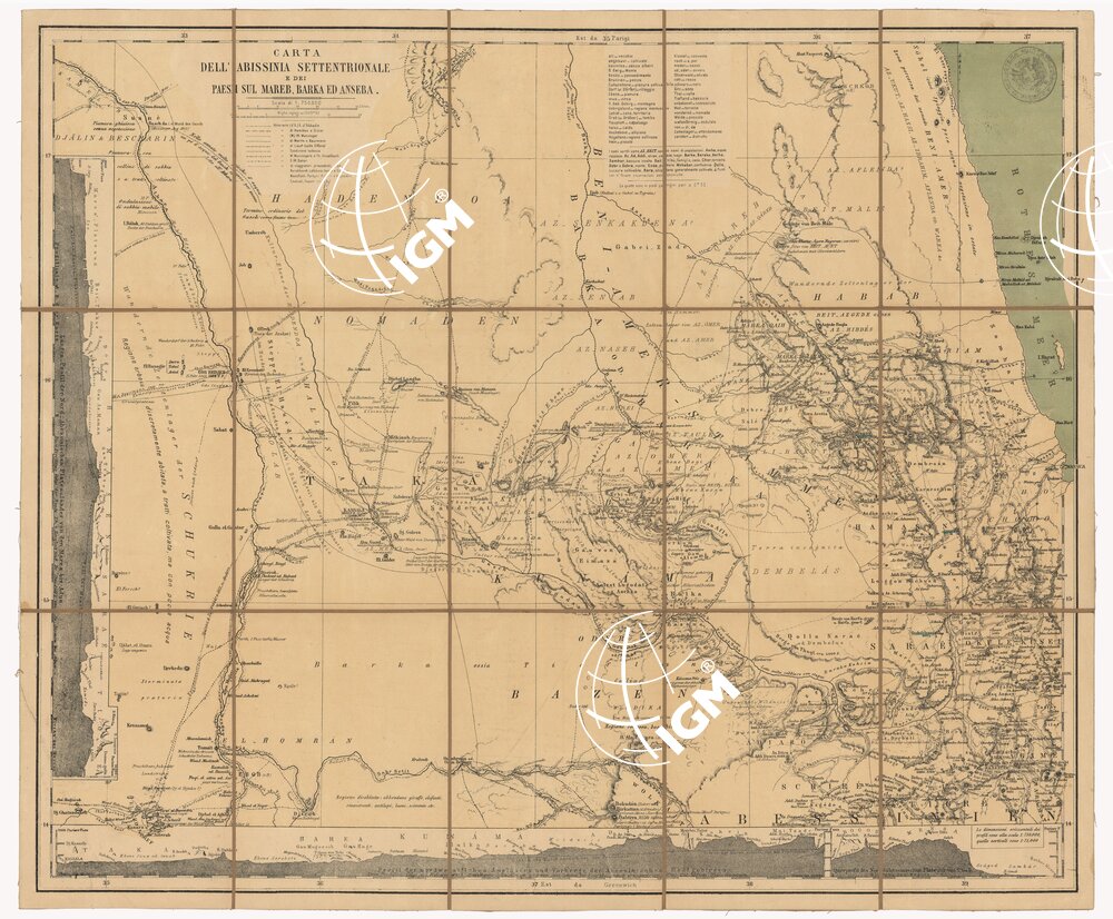CARTA DELL’ABISSINIA SETTENTRIONALE E DEI PAESI SUL MAREB, BARKA ED ANSEBA