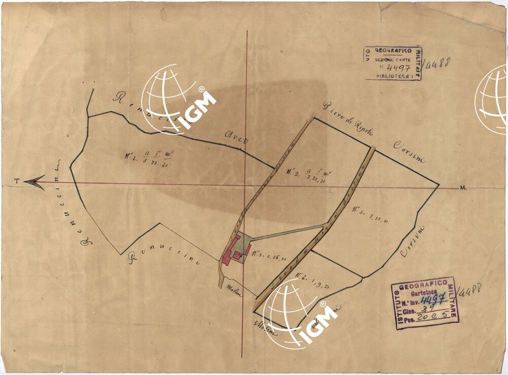 PLANIMETRIA DI UNA PROPRIETA’ DEI DINTORNI DI FIRENZE TRA LA “STRADA VECCHIA ARETINA” E LA ” STRADA REGIA ARETINA”