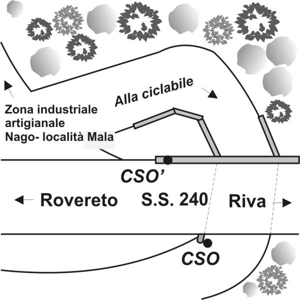 [{"simbolo_contrassegno":"B1","materializzazione":"(CSO) – Bullone infisso sulla spalla destra del sottopasso scendendo verso la ciclabile."},{"simbolo_contrassegno":"B7","materializzazione":"(CSO') – Contrassegno orizzontale ( centrino PAT) infisso sulla sommit\u00e0 del cordolo alla base della spalletta di sinistra del sottopasso in direzione Riva del Garda"}]
