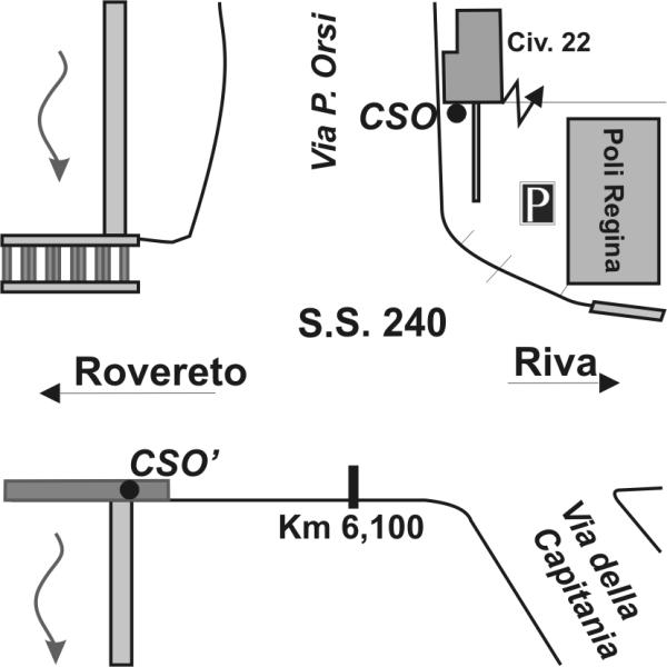 | Contrassegni | [{"simbolo_contrassegno":"B1","materializzazione":"(CSO) – Bullone infisso nel muro perimetrale destro della cabina ENEL."},{"simbolo_contrassegno":"B7","materializzazione":"(CSO') – Contrassegno orizzontale (chiodo PAT) infisso sulla sommit\u00e0 della spalletta a valle riva sinistra del ponte sul torrente"}] |