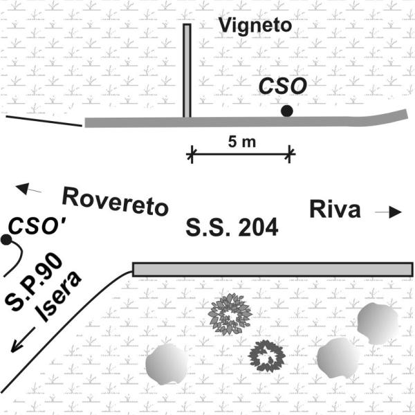 | Contrassegni | [{"simbolo_contrassegno":"B1","materializzazione":"(CSO) – Bullone infisso nell'esterno del muro a retta a valle del bivio al Km. 3,400 della S.S 240 con la S.P. 90."},{"simbolo_contrassegno":"B4","materializzazione":"(CSO') – Centrino universale infisso sul muretto raso suolo che regge i paletti di recinzione, lato destro direzione Riva Del Garda. Coincidente con IGM95 N\u00b0036708"}] |