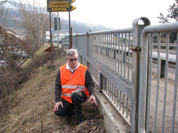 [{"simbolo_contrassegno":"B1","materializzazione":"(CSO) – Bullone infisso sul lato esterno del cordolo della balaustra del marciapiede in prossimit\u00e0 di un cancelletto sulla destra imboccando il ponte in direzione Bolzano."},{"simbolo_contrassegno":"B7","materializzazione":"(CSO') – Contrassegno orizzontale ( punto fiduciale PAT) infisso sulla soletta del marciapiede dietro al parapetto in pietra sulla destra imboccando il ponte in direzione Bolzano."}]