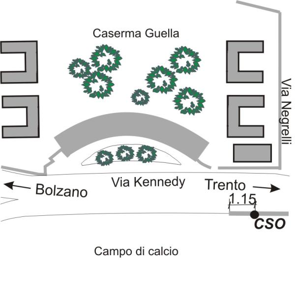 [{"simbolo_contrassegno":"B4","materializzazione":"(CSO) – Centrino universale posizionato all'inizio del muro del guard rail a valle della strada poco dopo l'accesso alla caserma."}]