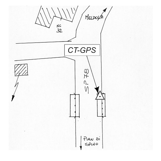 | Materializzazione | Centrino metallico infisso su cordolo di ponticello sulla S.P. 78 a 2 km circa da Località Pian di Spino. |