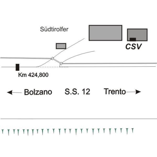 | Contrassegni | [{"simbolo_contrassegno":"V1","materializzazione":"(CSV) – Mensola infissa sulla facciata, lato strada, dell'edificio piu a sud che si trova all'interno del deposito di recupero rottami."}] |