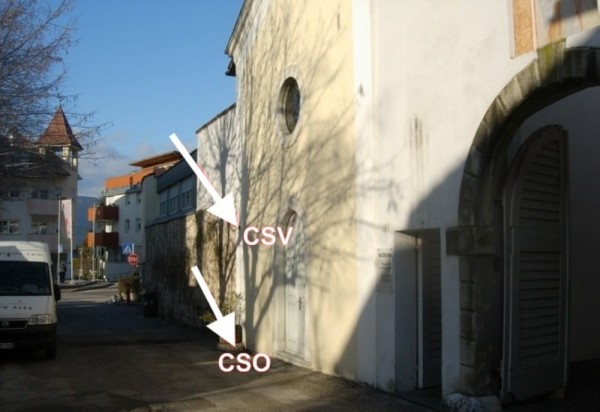 | Contrassegni | [{"simbolo_contrassegno":"P3","materializzazione":"(CSO) – Chiusino in ghisa posto alla base della facciata principale della cappella in prossimit\u00e0 dello spigolo sinistro."},{"simbolo_contrassegno":"V1","materializzazione":"(CSV) – Mensola infissa in corrispondenza del cso."}] |
