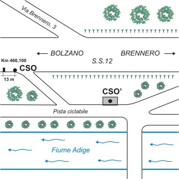 | Contrassegni | [{"simbolo_contrassegno":"B1","materializzazione":"(CSO) – Bullone infisso nel muro del guard rail a valle della strada in prossimit\u00e0 di un sentiero che scende verso la pista ciclabile."},{"simbolo_contrassegno":"B4","materializzazione":"(CSO') – Centrino universale infisso sulla copertura in cemento del casotto di un quadro elettrico per le pompe di un acquedotto, posto a fianco di una pista ciclabile."}] |