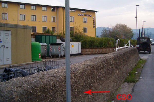 [{"simbolo_contrassegno":"B1","materializzazione":"(CSO) – Bullone infisso nel muro di calcestruzzo, all'altezza della cabina enel."}]