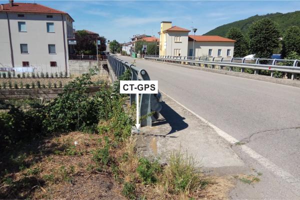 | Materializzazione | Centrino metallico infisso su marciapiede del ponte sul fiume Rabbi. |