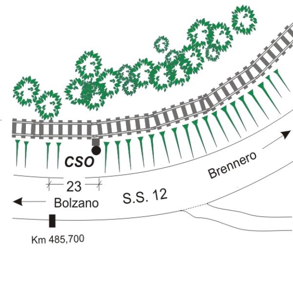 [{"simbolo_contrassegno":"B1","materializzazione":"(CSO) – Bullone infisso nelle fondamenta, lato strada, del traliccio n. 105 della linea elettrica della ferrovia."}]