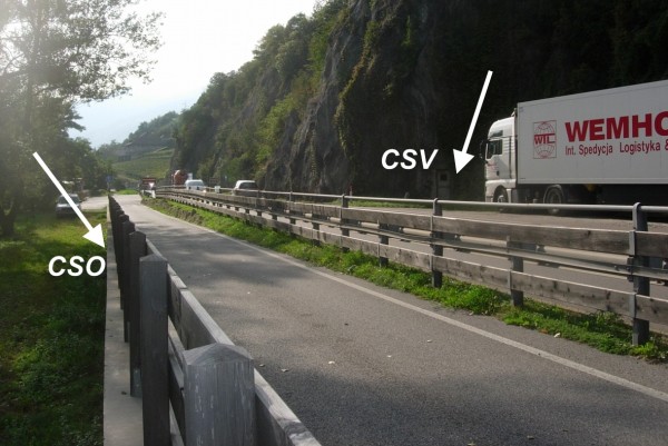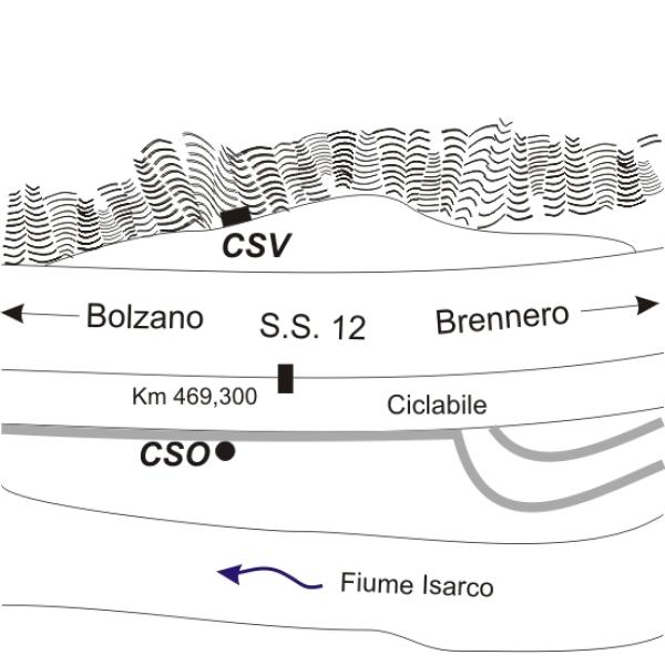 | Contrassegni | [{"simbolo_contrassegno":"B1","materializzazione":"(CSO) – Bullone infisso nella spalla del muro del guard rail, della pista ciclabile, lato fiume."},{"simbolo_contrassegno":"V1","materializzazione":"(CSV) – Mensola infissa a destra della porta in metallo dell'ex magazzino ANAS, scavato nella roccia, di fronte al cso."}] |