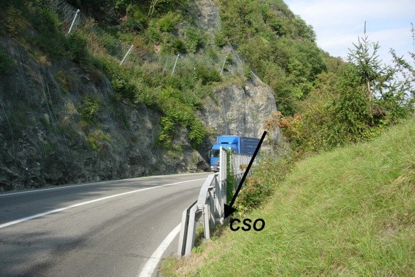 | Contrassegni | [{"simbolo_contrassegno":"B4","materializzazione":"(CSO) – Centrino universale infisso nel muro del guard rail lato a valle della strada."}] |
