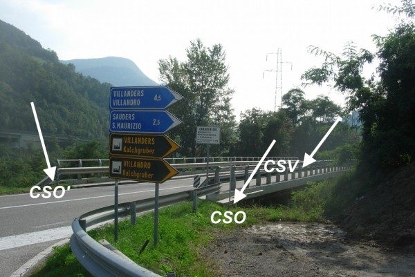 [{"simbolo_contrassegno":"B1","materializzazione":"(CSO) – Bullone infisso nella spalletta sinistra del ponte, direzione Brennero."},{"simbolo_contrassegno":"B7","materializzazione":"(CSO') – Contrassegno orizzontale di vario tipo con semisfera, del Catasto di Bolzano, PF 841-109 infisso nella spalletta del ponte, a destra direzione Brennero ."},{"simbolo_contrassegno":"V1","materializzazione":"(CSV) – Mensola infissa sulla spalletta destra del ponte, direzione Bolzano."}]