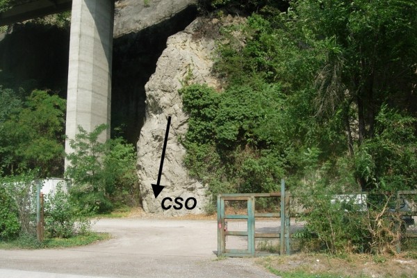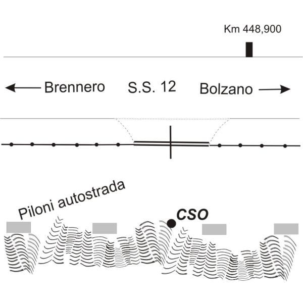 [{"simbolo_contrassegno":"B1","materializzazione":"(CSO) – Bullone infisso nella roccia all'interno di un piazzale deposito, tra la SS 12 e il pilone della autostrada. Per l'apertura del cancello \u00e8 necessario contattare il proprietario."}]