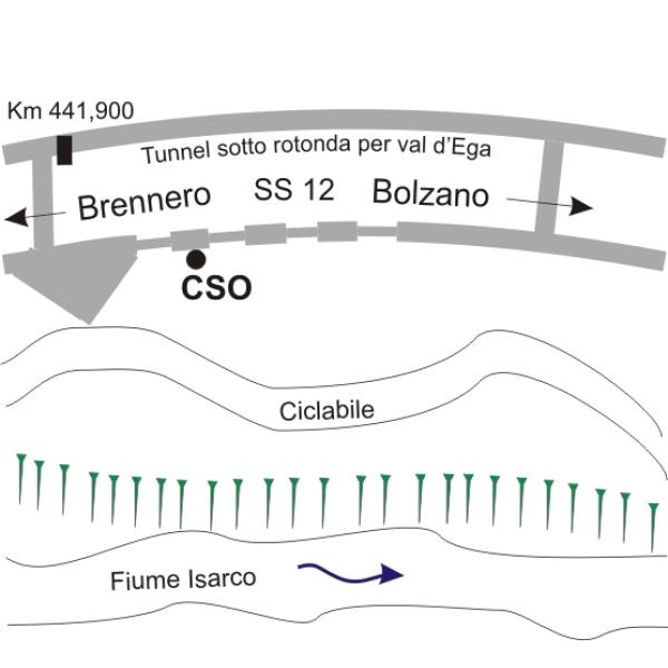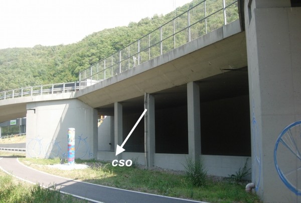 [{"simbolo_contrassegno":"B1","materializzazione":"(CSO) – Bullone infisso in un pilastro di sostegno della statale, lato ciclabile."}]