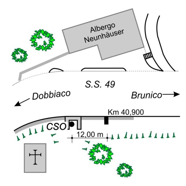 | Contrassegni | [{"simbolo_contrassegno":"B1","materializzazione":"(CSO) – Bullone infisso all'interno di un tombino in c.a., a monte della strada, di fronte al hotel \"Neunh\u00e4user\"."}] |