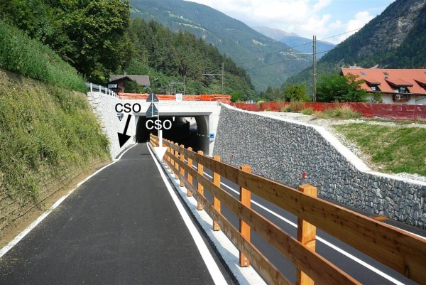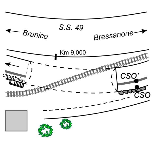 | Contrassegni | [{"simbolo_contrassegno":"B1","materializzazione":"(CSO) – Bullone infisso sul muro di sostegno in pietre naturali a monte della pista ciclabile; prima dell'imbocco del tunnel a sinistra della statale in direzione Brunico."},{"simbolo_contrassegno":"B4","materializzazione":"(CSO) – Centrino universale Inox infisso sulla sommit\u00e0 del muro in cemento armato a valle della pista ciclabile, in prossimit\u00e0 del CSO."}] |