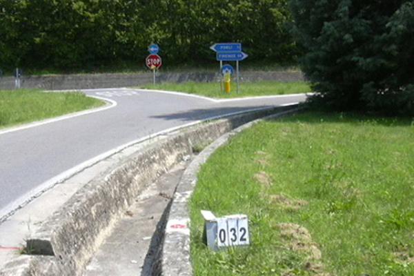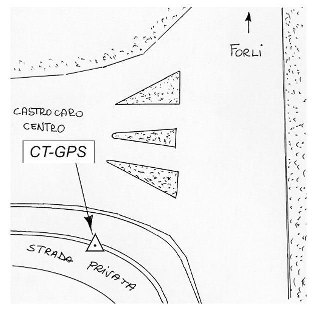 | Materializzazione | Centrino metallico infisso su cordolo di canaletta scorriacque nei pressi dello svincolo, sulla S.S. 67, per Castrocaro al km 79,500. |