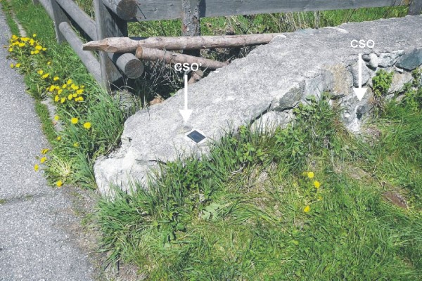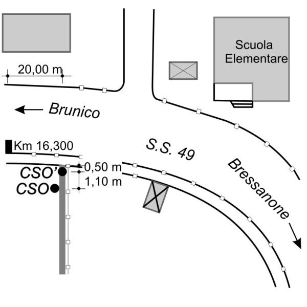 | Contrassegni | [{"simbolo_contrassegno":"B1","materializzazione":"(CSO) – Bullone infisso nel muro in pietra naturale, a sinistra della strada, lato volto verso Brunico."},{"simbolo_contrassegno":"B6","materializzazione":"(CSO) – Centrino IGM95 \"tipo C\" infisso sulla testa del muro in pietra naturale, a sinistra della strada, in direzione di Brunico."}] |