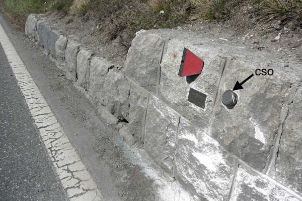 [{"simbolo_contrassegno":"B1","materializzazione":"(CSO) – Bullone infisso sul muro in pietra naturale situato a monte della strada."}]