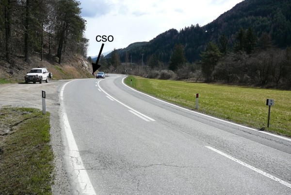 [{"simbolo_contrassegno":"B1","materializzazione":"(CSO) – Bullone infisso sulla roccia a monte della strada, in prossimit\u00e0 del segnale chilometrico."}]