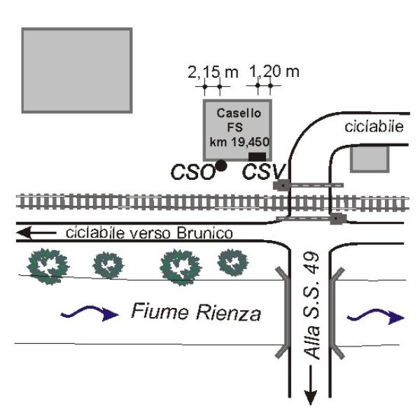 | Contrassegni | [{"simbolo_contrassegno":"B1","materializzazione":"(CSO) – Bullone infisso sulla facciata volta verso i binari del casello ferroviario, in prossimit\u00e0 dello spigolo sinistro."},{"simbolo_contrassegno":"V3","materializzazione":"(CSV) – Piastrina antica Austriaca infissa sulla stessa facciata, in prossimit\u00e0 dello spigolo destro."}] |
