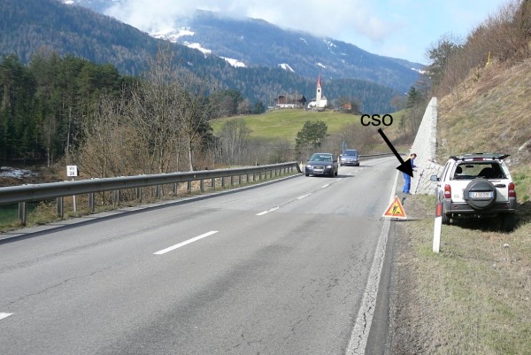 [{"simbolo_contrassegno":"B1","materializzazione":"(CSO) – Bullone infisso nel muro di sostegno in pietra naturale a sinistra della strada, in direzione Brunico."}]