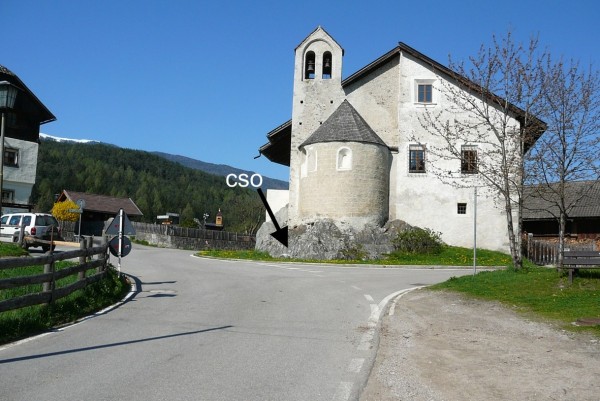 [{"simbolo_contrassegno":"B1","materializzazione":"(CSO) – Bullone infisso sulla roccia alla base della chiesa di Castelbadia, lato volto verso Brunico."}]